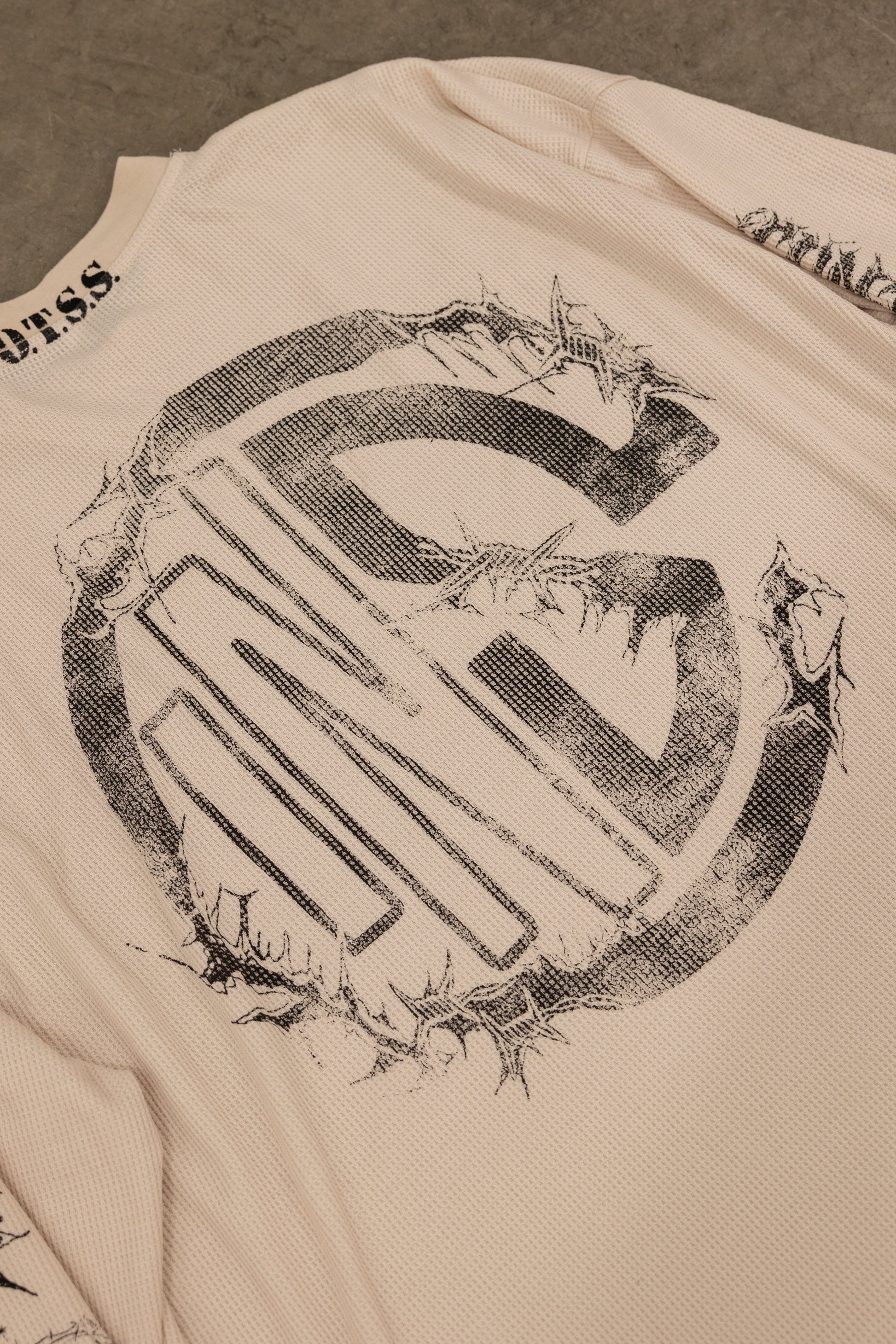This one’s for the ones built from the dark. The SOTF Thermal Long Sleeve is thick, rugged, and made to last — just like you. Featuring a massive skull wrapping down the sleeves, it’s a nod to the fight, the fire, and everything you've survived. On the back, our logo is entangled in thorns — a symbol of strength through pain. And at the neckline, SOTF is etched in bold: Survival of the Fittest. This isn't just a shirt — it's a reminder. Only the relentless make it out.