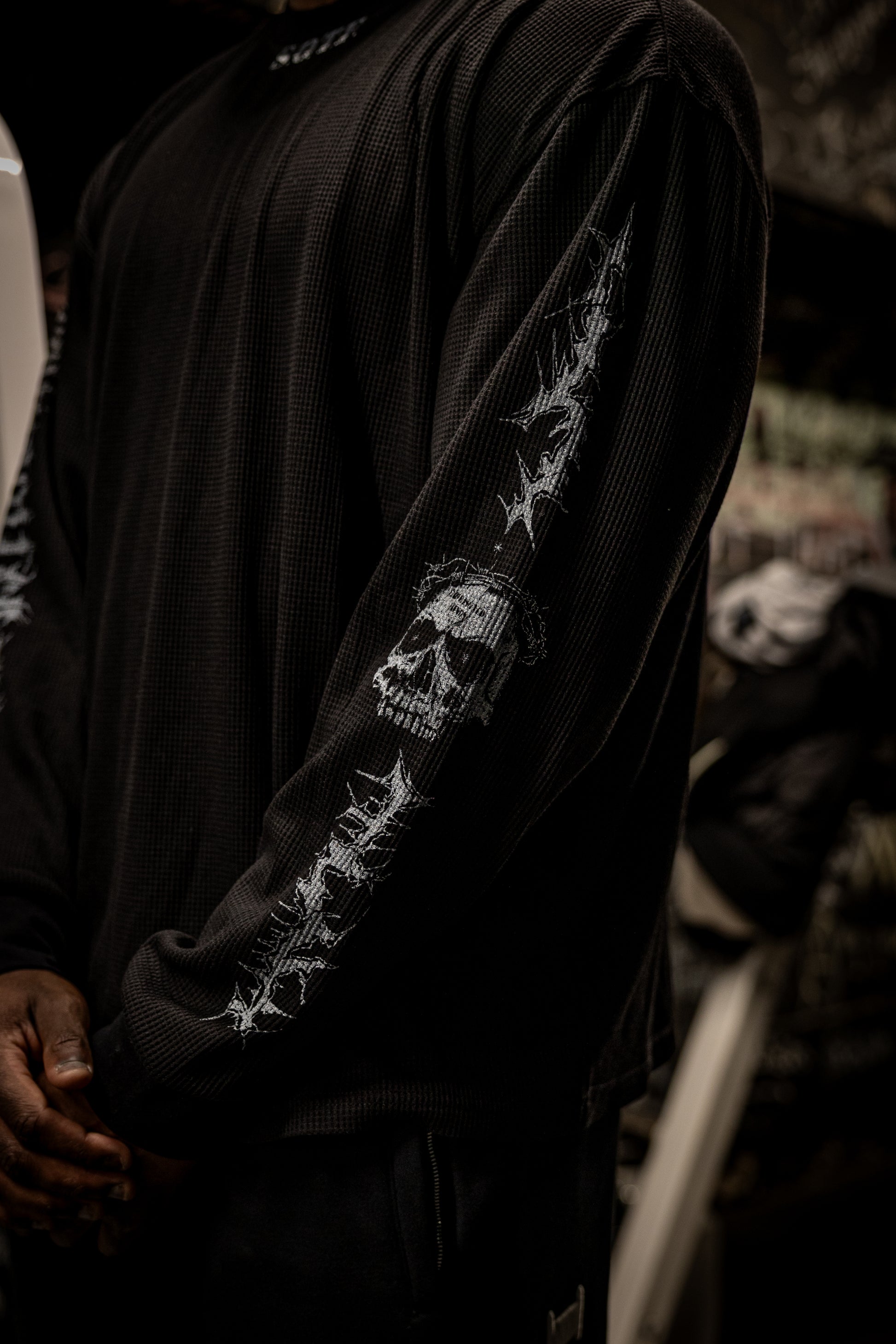 This one’s for the ones built from the dark. The SOTF Thermal Long Sleeve is thick, rugged, and made to last — just like you. Featuring a massive skull wrapping down the sleeves, it’s a nod to the fight, the fire, and everything you've survived. On the back, our logo is entangled in thorns — a symbol of strength through pain. And at the neckline, SOTF is etched in bold: Survival of the Fittest. This isn't just a shirt — it's a reminder. Only the relentless make it out.